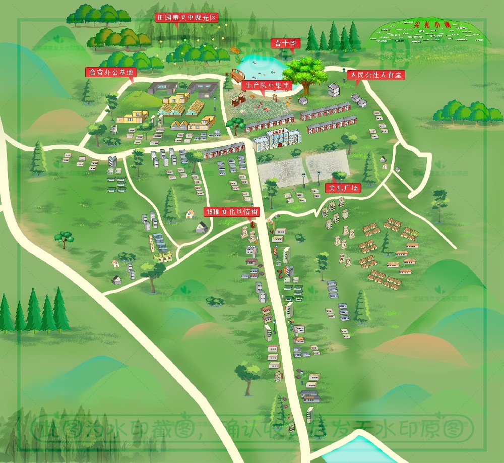尖礼小镇距离市区约 5 分钟车程,游览一遍如同亲临全国产地,并切身穿越到上世纪七八十年代。尖礼小镇不仅有人民公社特色,亦有各地特色历史文化,深受游客青睐。 前往尖礼小镇的路上,可以看见一座布满中国各地特产的产籍山,极其震撼。往里再进 0.8 公里,即到小镇的主干道——1976 文化风情长街,这条街充溢着七八十年代的气息,一直延伸到公社大楼。 最具代表性的人民公社大楼共有 3 层,完整保留了 70 年代人民公社的时代感,外观恢弘磅礴,充分体现了当年劳动人民的智慧与勤劳。首层为产地仓,二层为供销大厅,三层是产籍码查验中心,专为特产赋能产地身份证。 公社大楼的周围由 70 年代建筑改造为产籍馆,共有 34 间,分别以广东、广西、海南、河北、山西、黑龙江、吉林、辽宁、江苏、浙江、安徽、福建、江西、山东、河南、湖南、贵州、云南、山西、甘肃、内蒙古、台湾、西藏、宁夏、新疆、澳门、香港、青海、湖北、四川、上海、北京、重庆、天津等地的产籍特色文化来呈现。 后侧更有人民公社大食堂和生产队小集市,以生产队时期的风貌结合现代化小食集市,也是小镇一大标志性建筑之一,让来客感受地道市井文化。 从上海产籍馆俯瞰,有棵合十树已有百年历史;相传是附近群众的风水树,后人把树命名为“合十树”,寓意合十祈愿,逢十还愿。每逢初十许愿,初十还愿,全年十全十美。 尖礼小镇不仅以追求特产源头为重,还遵循“产地出好粮”的初心。